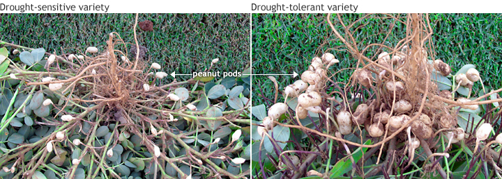 Changing farming practices can also enhance peanuts’ odds of success. Peanut plants subjected to dry conditions early in the growing season appear to pre-adapt to dry conditions likely to occur later in the growing season. And the farming strategy of conservation tillage—leaving the previous crop’s residue on agricultural fields to reduce erosion and runoff—increases peanut yields.