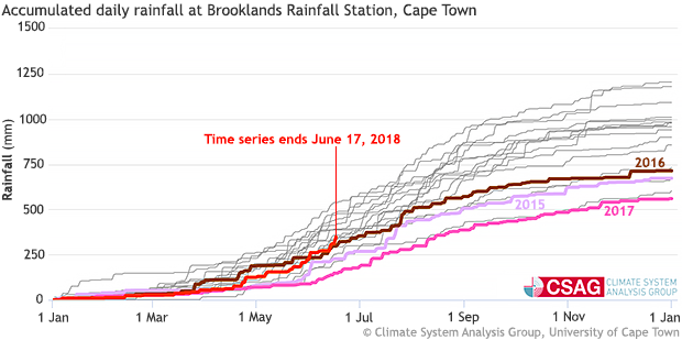 Climate Systems Analysis Group. Current season's rainfall in Cape Town. University of Cape Town. Accessed June 22, 2018.