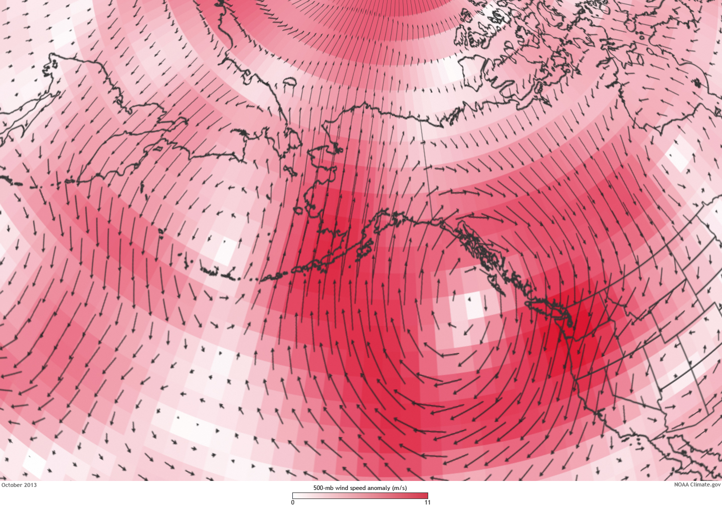 The unusual atmospheric circulation helped October 2013 finish up as one of the warmest Octobers of record across much of Alaska. Anchorage had the warmest October in nearly a century. In Fairbanks, where observations go back to 1904, this was the third warmest October ever observed.