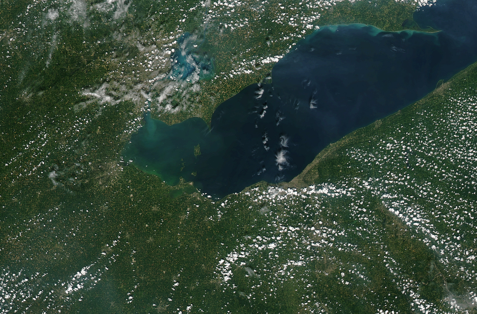 NASA satellite image of toxic algae bloom in Lake Erie on August 3, 2014.
