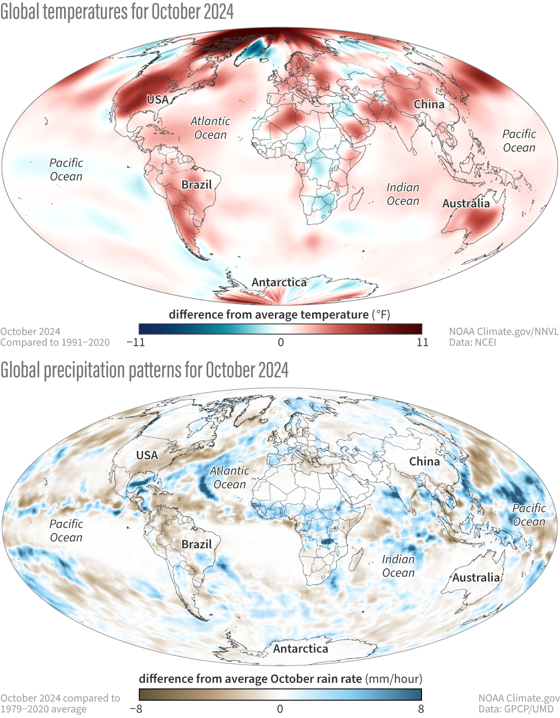 For more information on global climate in October, including major events, drought status, and global sea ice, see the full global climate summary for October 2024 from NOAA National Centers for Environmental Information.