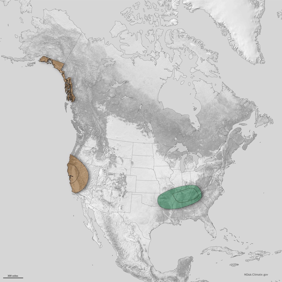 Outlook data provide by NOAA’s Climate Prediction Center. Maps by Hunter Allen, NOAA’s Climate Program Office. Reviewed by Mike Halpert, NOAA Climate Prediction Center. Caption by David Herring, NOAA Climate Program Office.