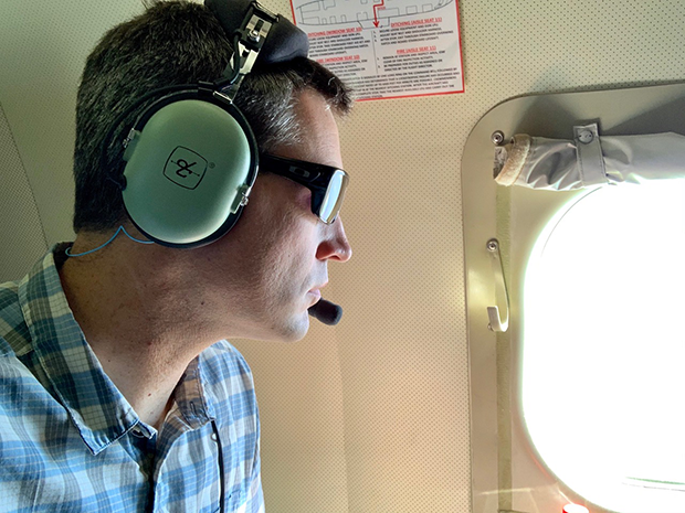Dr. Gijs de Boer on board the NOAA P-3 Hurricane Hunter aircraft during the ATOMIC field campaign in January 2020. Photo: Gijs de Boer