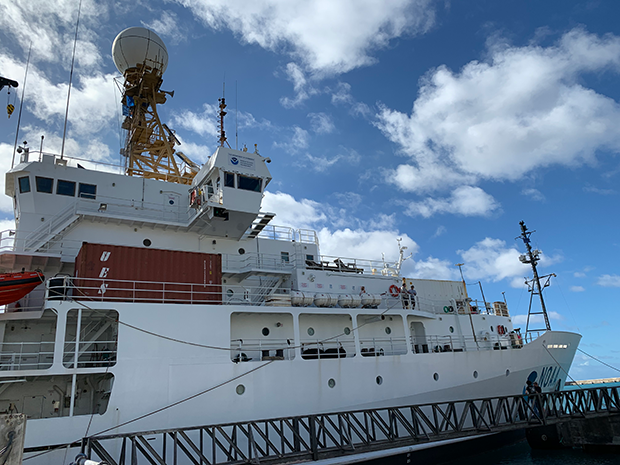 NOAA Ship Ronald Brown docked in Barbados during the ATOMIC field campaign in January 2020. Photo: Sandy Lucas