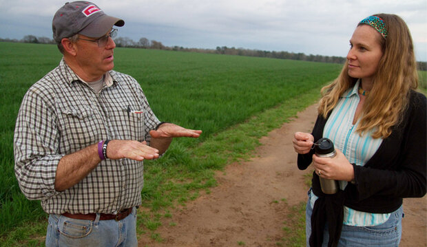 From a climate perspective, what's perhaps even more important to both men is when to transition from growing cover crops to killing them and planting cash crops. There's a delicate balance between having a hearty enough cover to protect the cash crops and not letting the cover crop grow so long that it starts to suck up moisture and nutrients that the cash crop might need down the road.