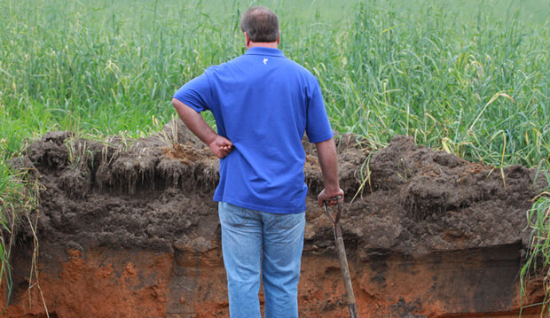 Just like Johnson, he knows what the alternative to cover cropping is. "We used to spend four, five, six weeks a year hauling soil back up the hill," he said, pointing to the deceptively gentle slope behind him. "And as far as soil quality we still wouldn't be at the spot we were 12 months earlier, as the good stuff had been lost to the creeks."
