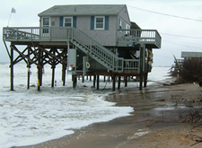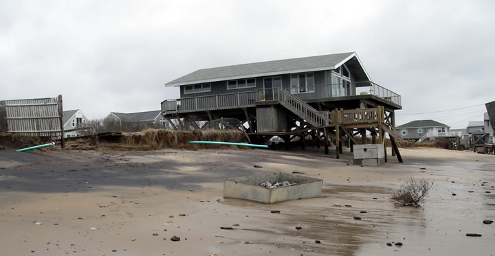 Storm surges and high tides pose a continuing threat to some beachfront homes in Rhode Island. Some owners have already moved their homes to higher locations. Photo courtesy of Rhode Island Coastal Resources Management Council.