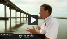 Port Fourchon sits on the very edge of the country, all the better for vessels shuttling supplies to and from deepwater oil platforms across miles and miles of ocean. Keeping it open is a big deal because the port services 90 percent of all deepwater activity in the Gulf of Mexico. Port Director Chett Chiasson tours the harbor while discussing the importance of preparedness, adaptation, and resilience. NOAA Climate.gov video.