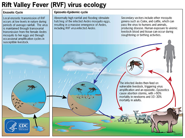 Rift Valley Fever (RVF) is a deadly mosquito-borne disease that affects both humans and valuable livestock in Africa. The fever-causing virus affects the local population and domestic animals such as cattle, buffalo, sheep, goats, and camels. Occurring in years of unusually heavy rainfall, the flooding caused by these rains provides an ideal environment for naturally infected mosquito eggs to hatch.