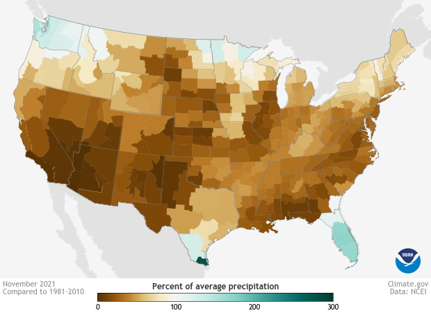 November 2021 was seventh-warmest, eighth-driest November on record for U.S.