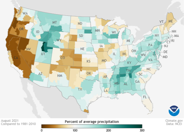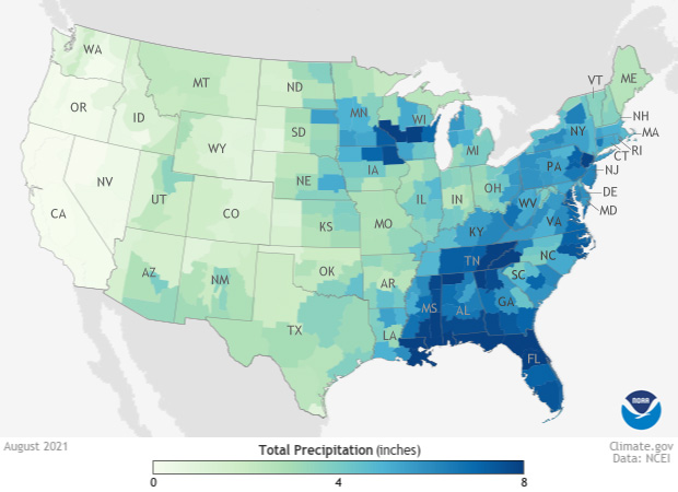 For more climate statistics for August, summer, and the year to date, see Assessing the U.S. climate in August 2021 at the NCEI website.